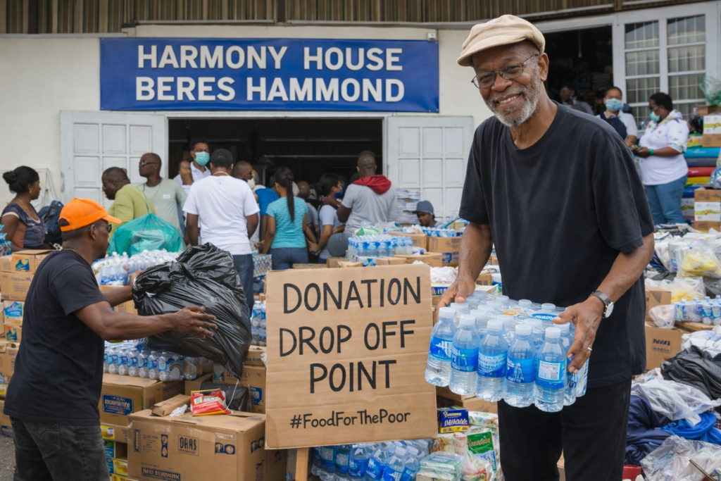 Reggae icon Beres Hammond once again demonstrated his deep commitment to community by opening his Harmony House headquarters in Kingston as a hurricane relief donation center. The space quickly became a hub for generosity, welcoming contributions of non-perishable food items, bottled water, hygiene supplies, and clothing for families affected by the storm. Supporters from across Kingston and beyond came together, turning Harmony House into a place of unity and compassion during a critical time.