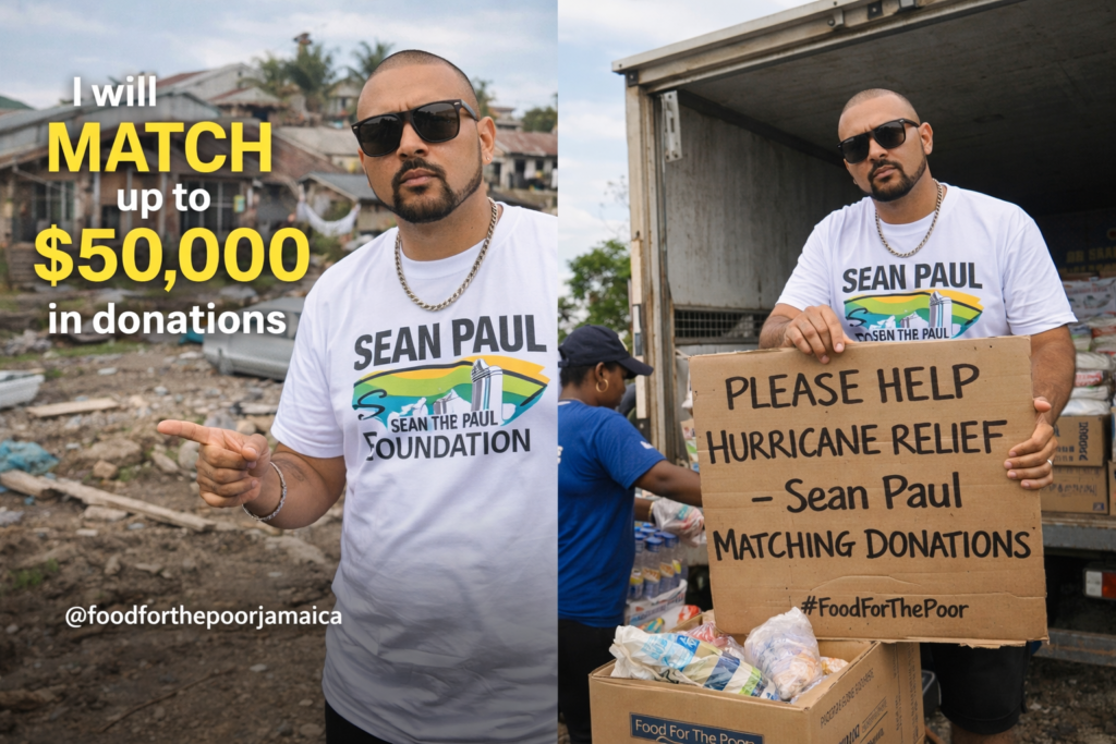 Dancehall icon Sean Paul stepped forward in a powerful show of solidarity by pledging to match up to US $50,000 in donations toward Hurricane Melissa relief efforts. Working through the Sean Paul Foundation in partnership with Food For The Poor Jamaica, the initiative aimed to double the impact of every contribution, ensuring that urgently needed aid reached displaced families and vulnerable communities across the island.