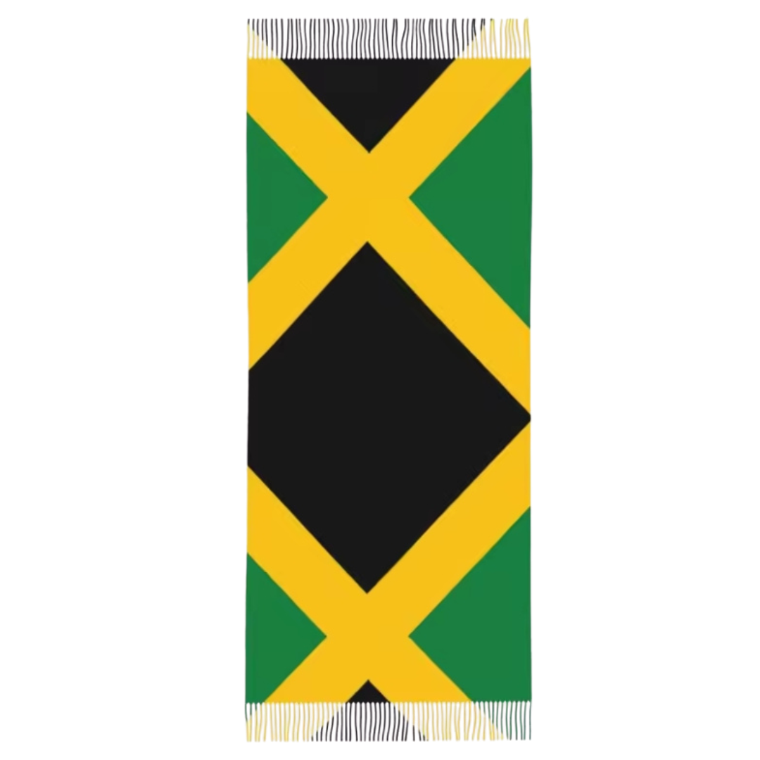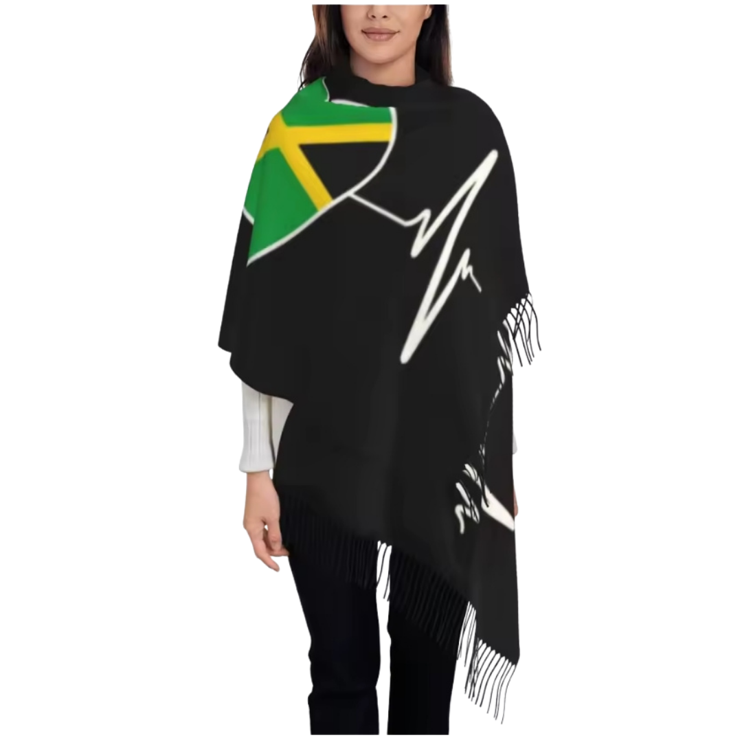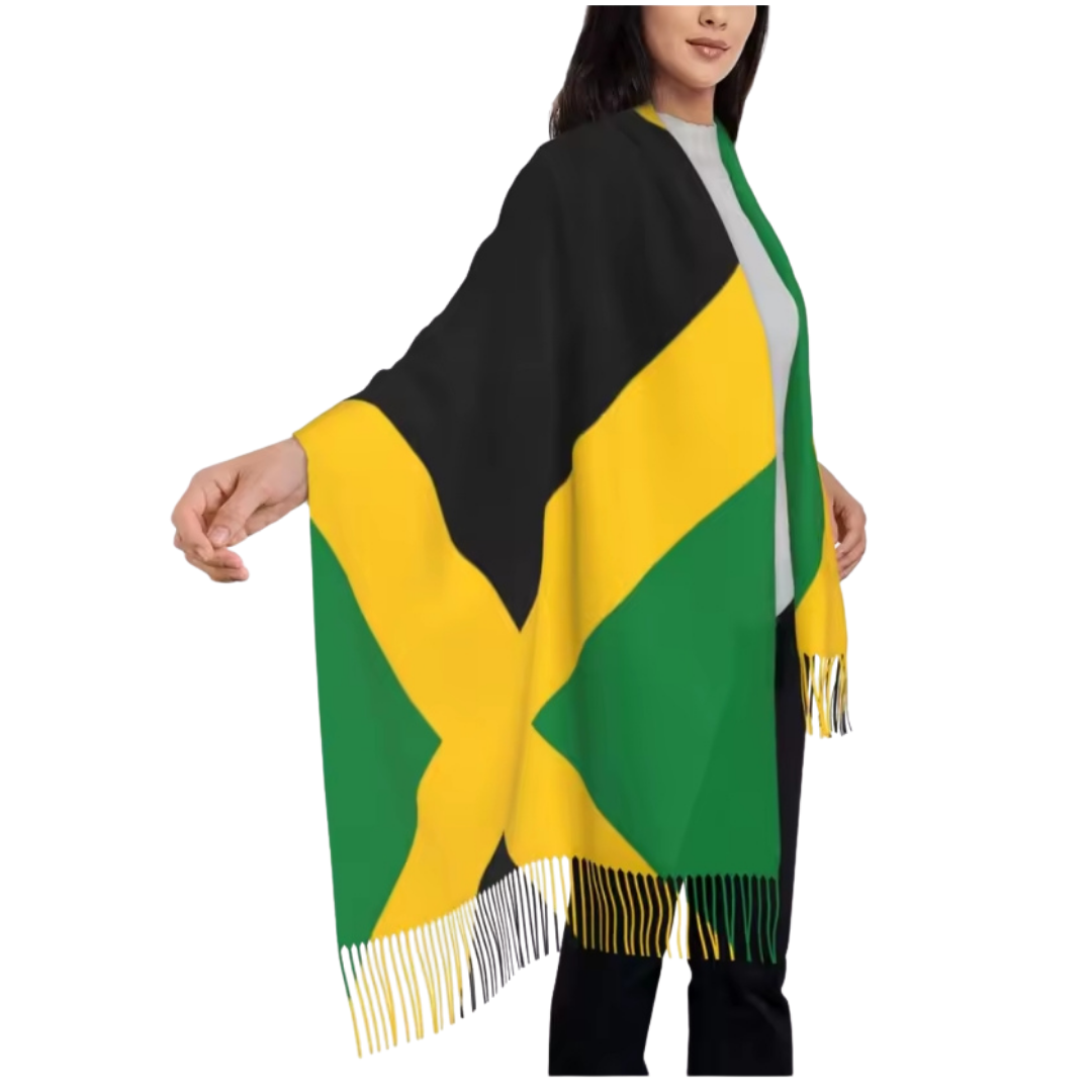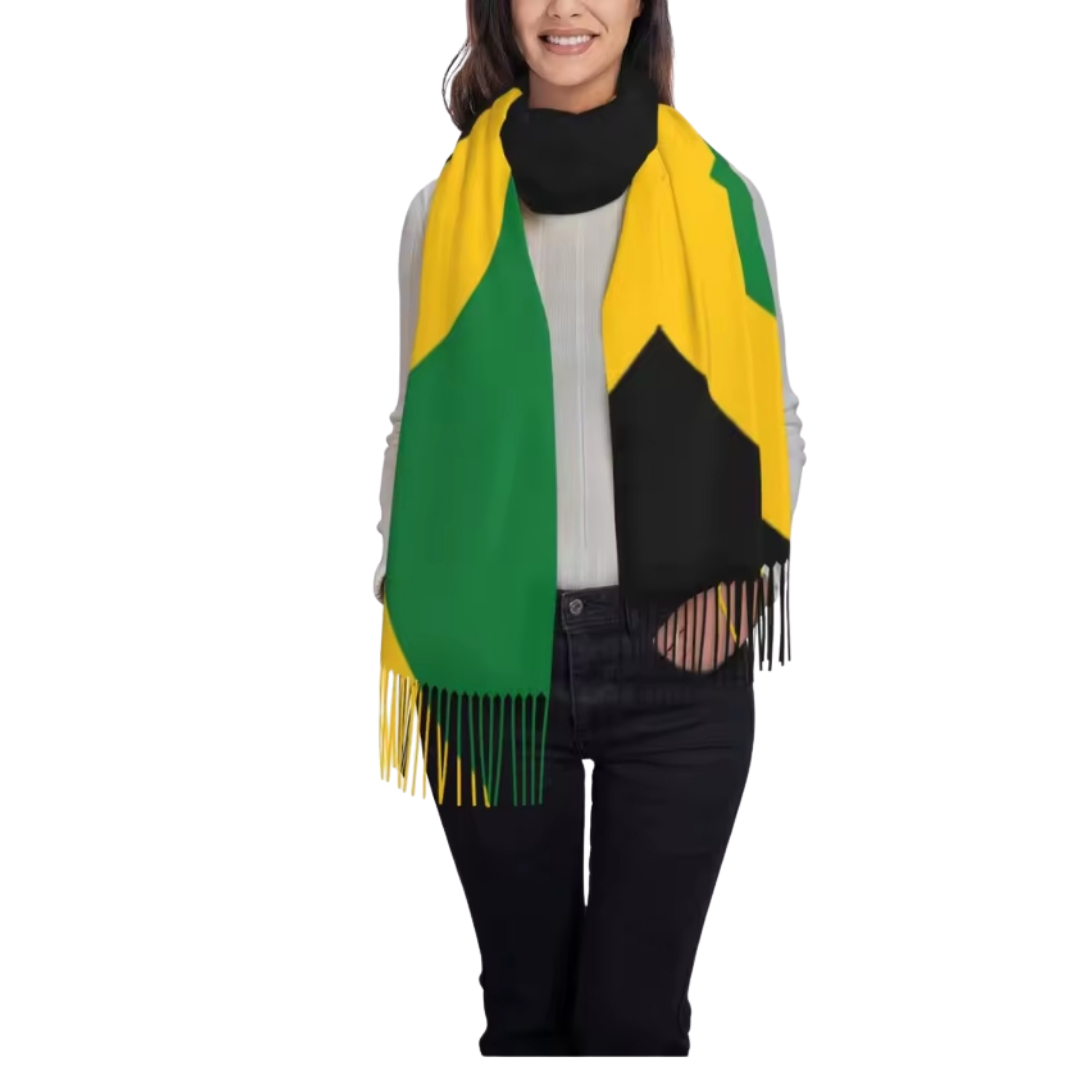 This vibrant Jamaica Flag Scarf is a timeless accessory designed to celebrate heritage with style. Featuring the iconic black, green, and gold colors, it adds instant cultural confidence to any outfit.