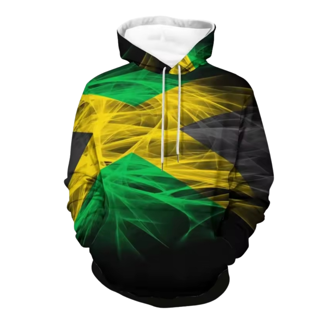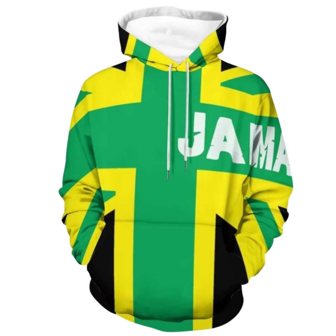 Wrap yourself in culture. This all-over Jamaica design hoodie delivers bold island vibes with comfort and confidence. Perfect for cool evenings and standout streetwear style.