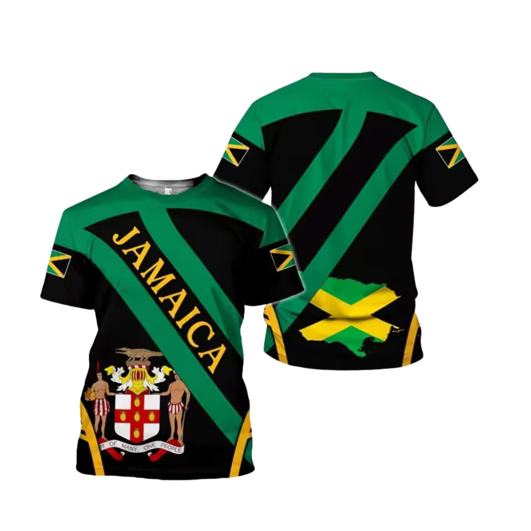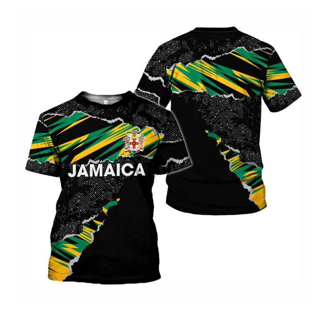 A powerful fusion of modern street style and traditional Jamaican colors. This tee represents resilience, rhythm, and roots — built for everyday cultural expression.