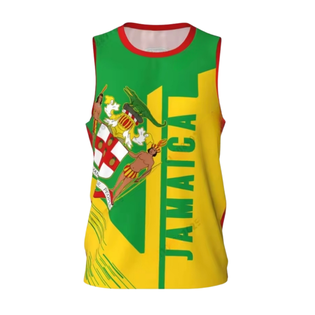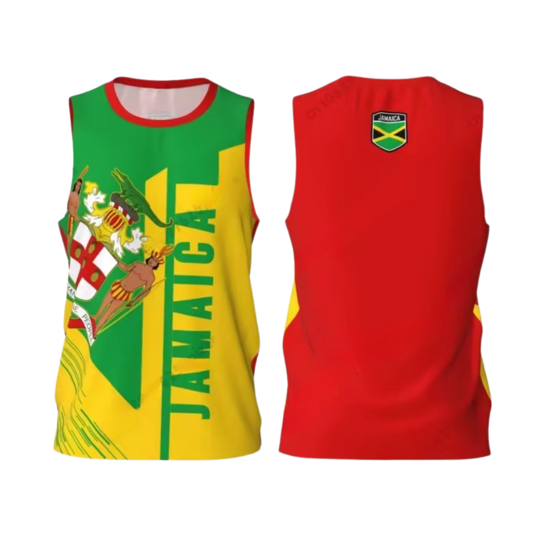 This sleeveless Jamaica Heritage Tank Top features the iconic national colors and crest in a modern, eye-catching design. Lightweight and breathable, it’s perfect for warm weather, festivals, workouts, or everyday streetwear.