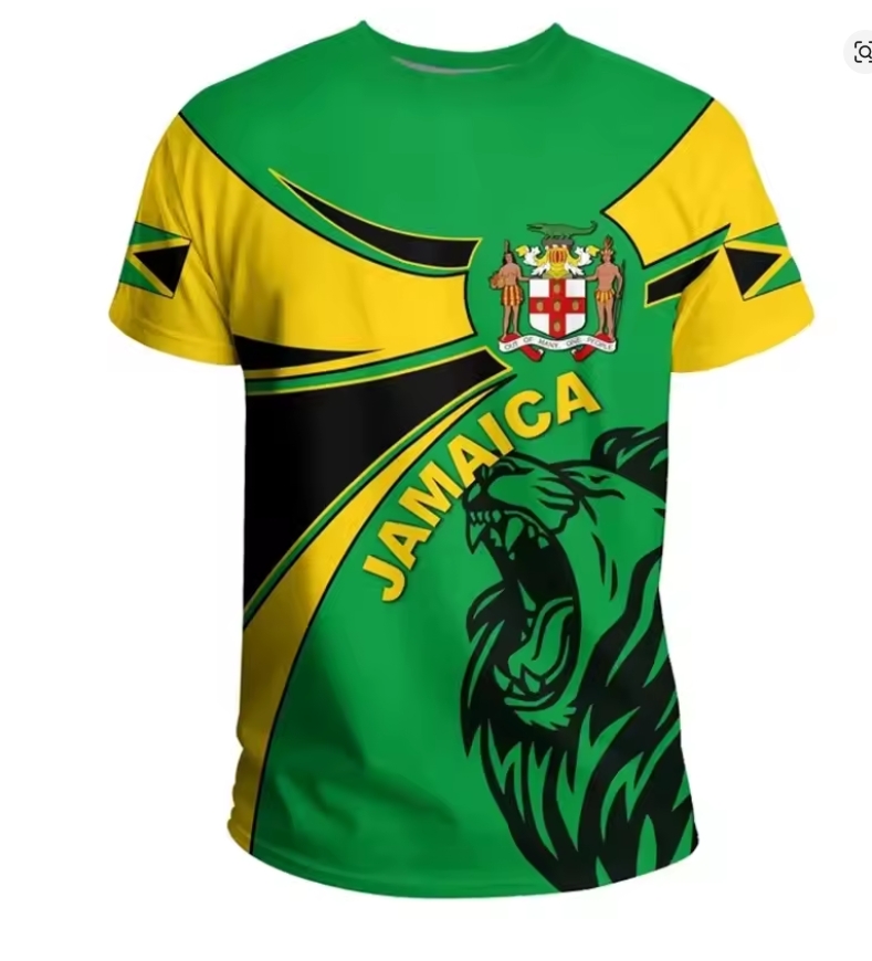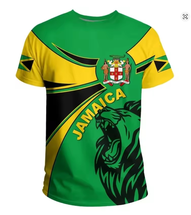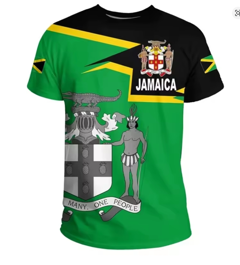 Represent Jamaica with pride. This bold emblem T-shirt features the iconic national colors and crest, designed for those who carry their heritage wherever they go. Comfortable, eye-catching, and built for everyday wear, it’s a statement of identity and unity.