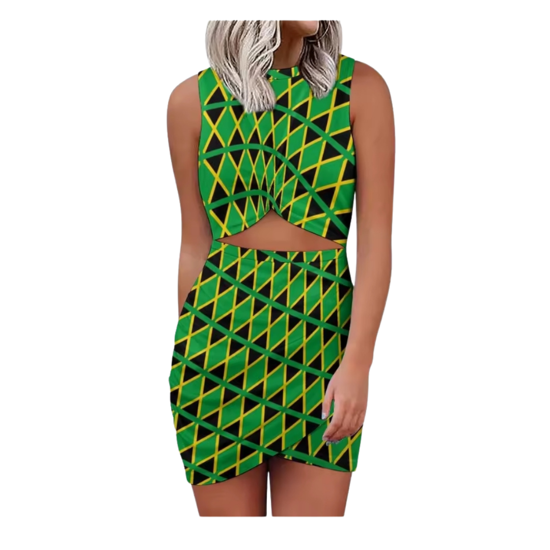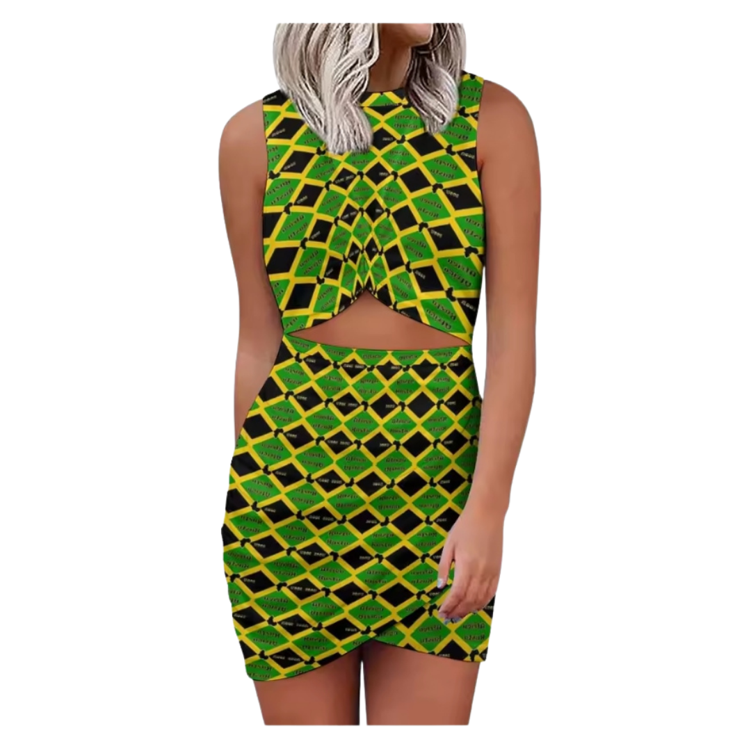 Celebrate island vibes with this Jamaica One Love Women’s Bodycon Dress, inspired by the vibrant colors and culture of Jamaica. Featuring a stylish green design with bold Jamaican-inspired graphics and “One Love” message, this dress represents unity, positivity, and Caribbean style.