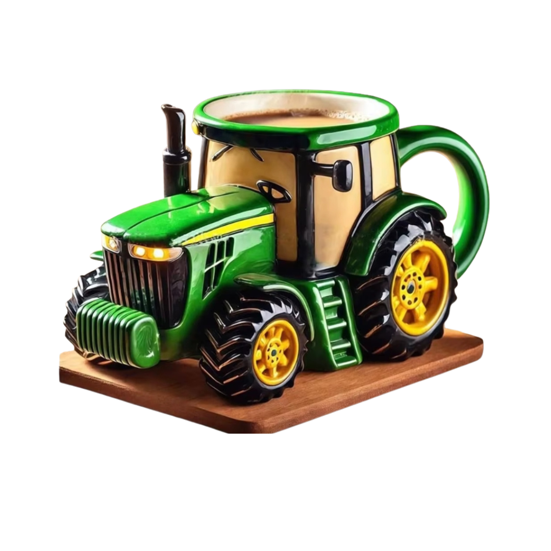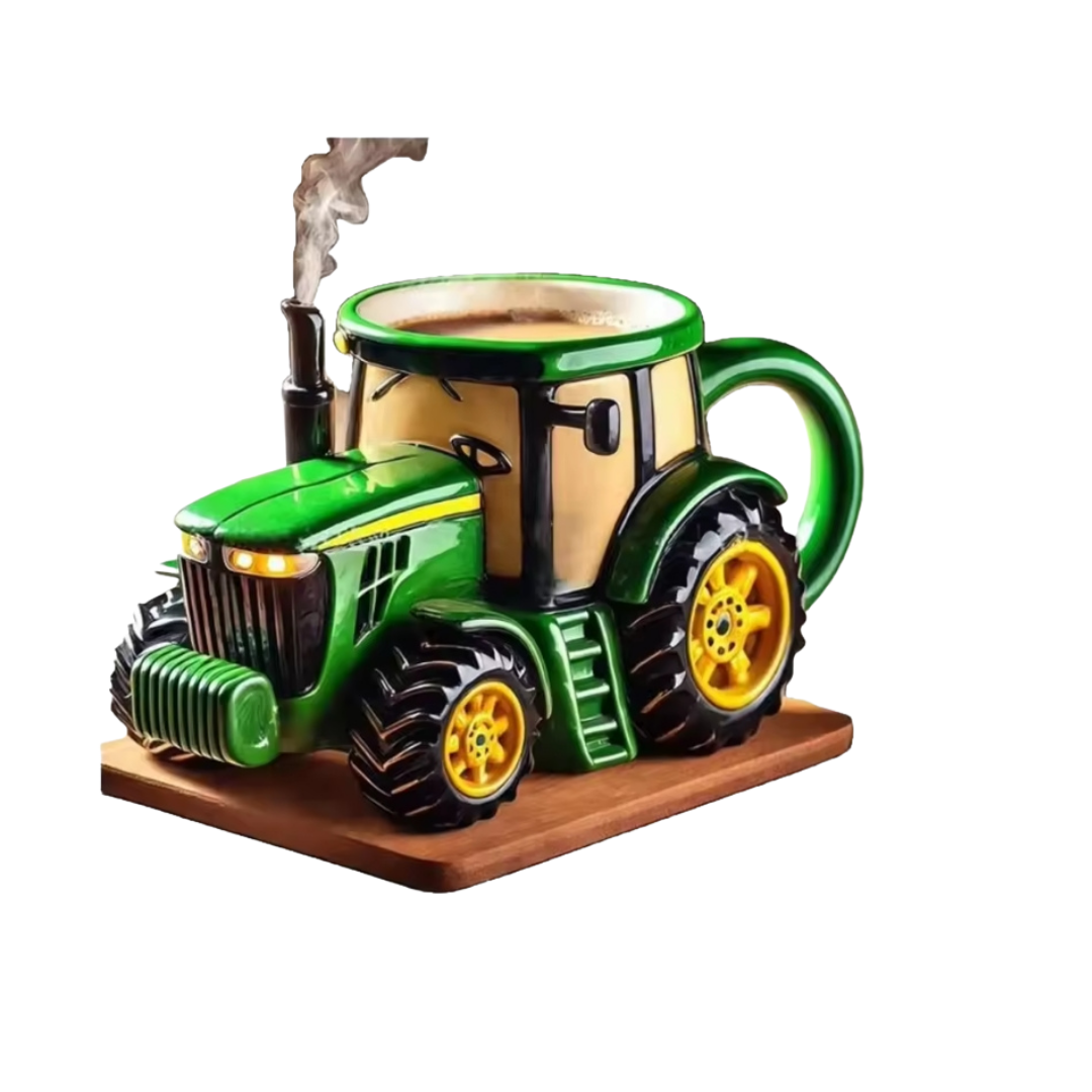 A creative ceramic mug featuring a unique handmade tractor design. A standout gift for collectors who appreciate culture with a twist.