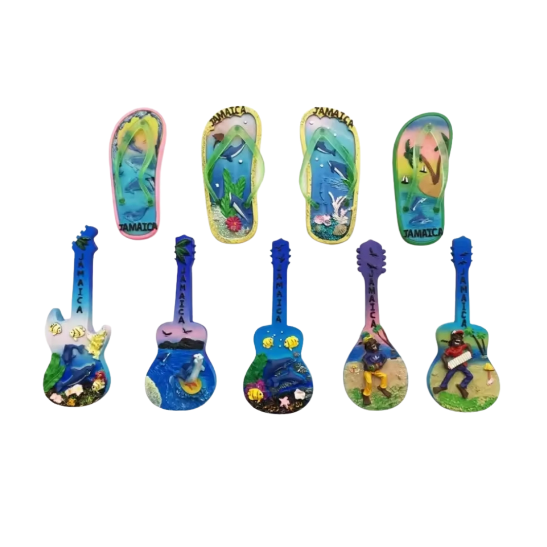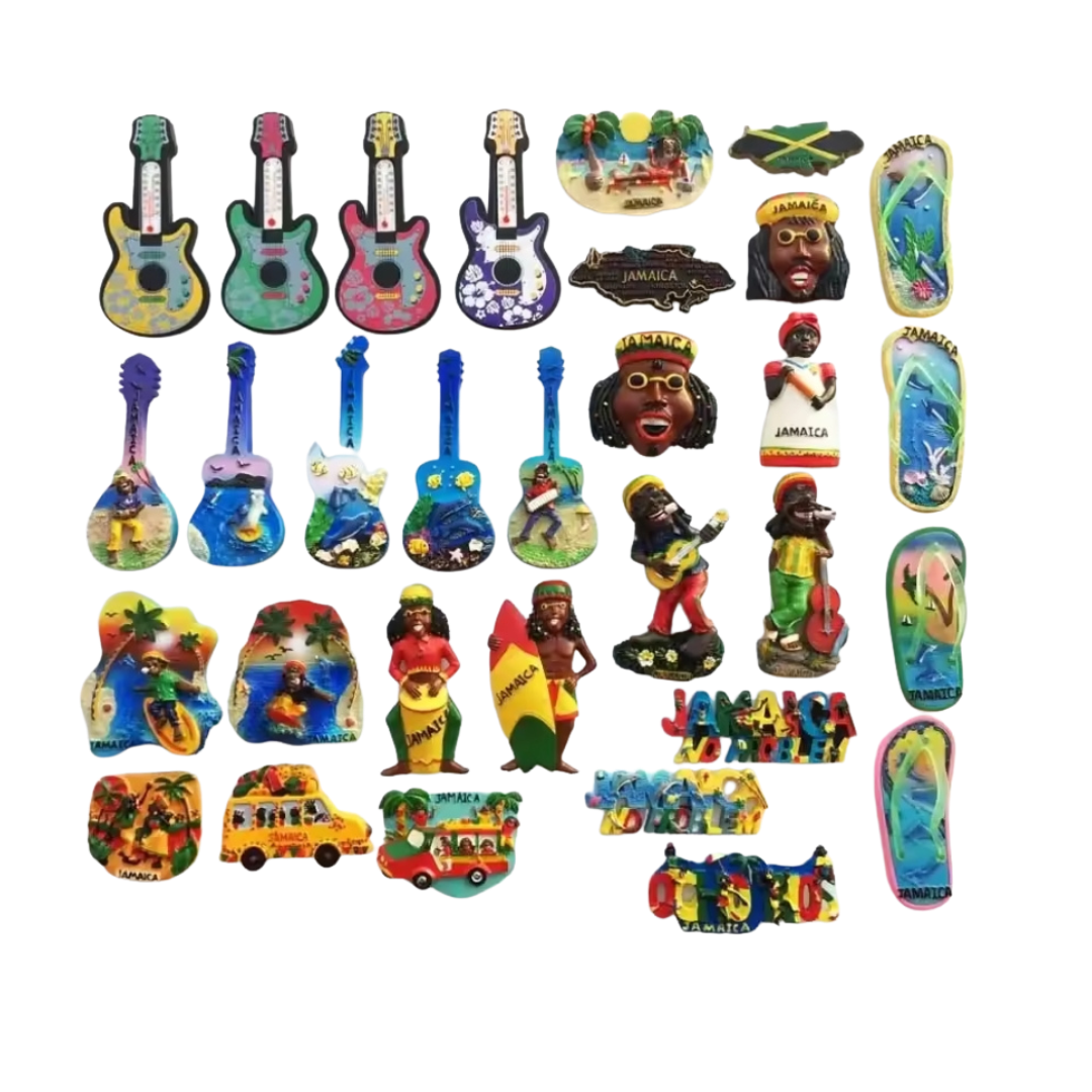 A vibrant collection of mini Jamaican-inspired graphics including instruments, dancers, and cultural icons. Perfect for decorating laptops, notebooks, water bottles, or gift packaging.